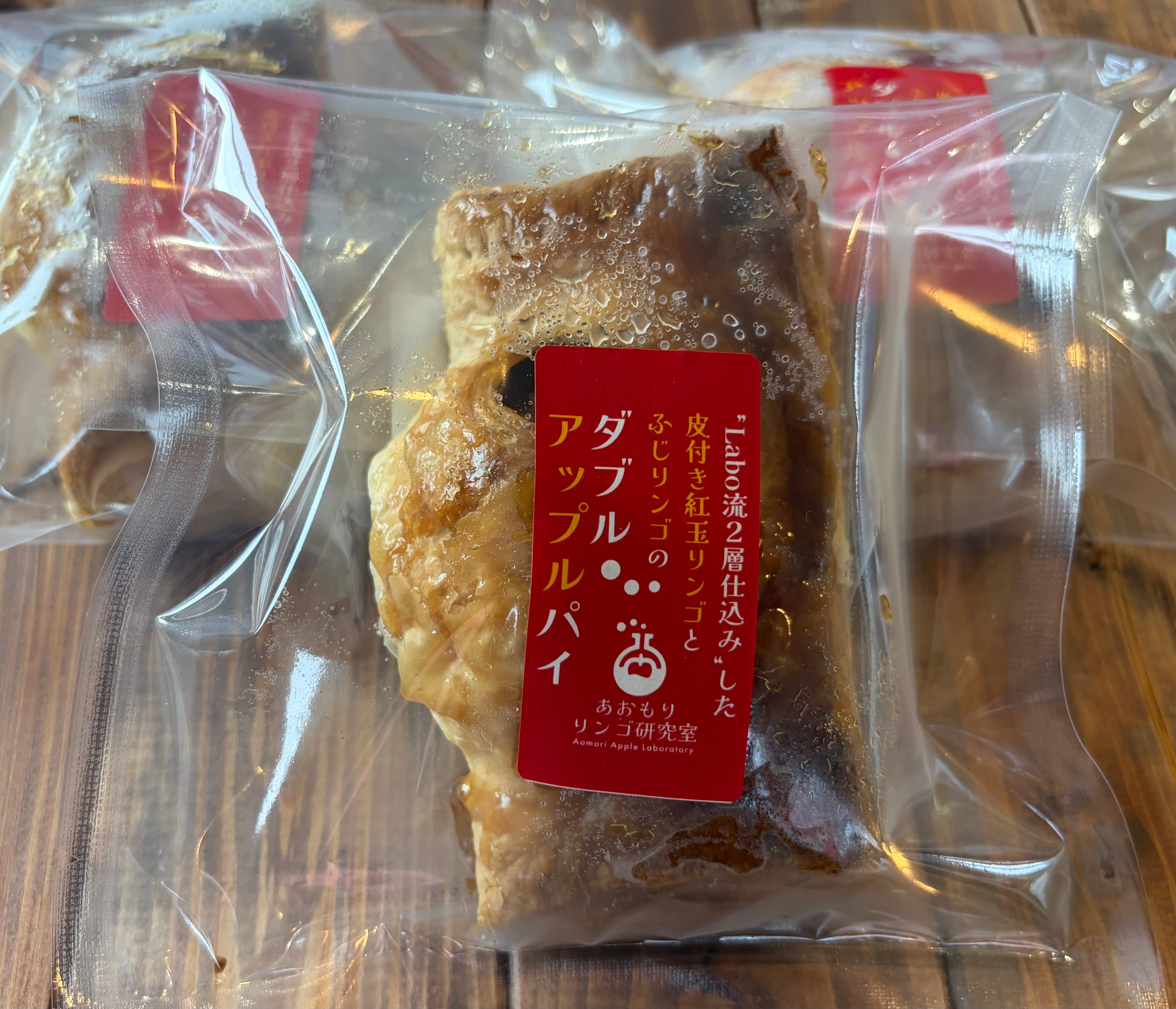 あおもりリンゴ研究室のダブルアップルパイは、皮付きりんごを使い、独自に設計した