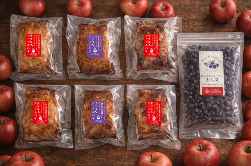 研究成果セレクションが代表作を中心とした詰め合わせであるのに対し、本商品はアップルパイと果実素材を含めた全アイテム構成。